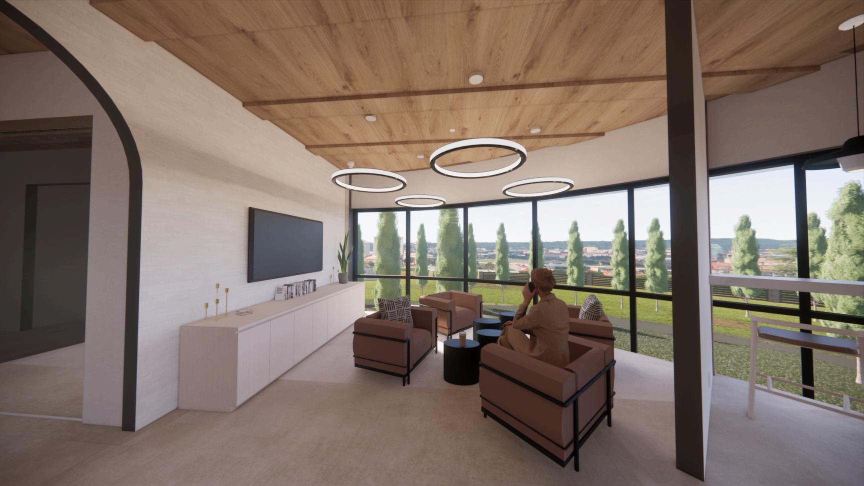 Napa, California, embodied meticulously crafted charm with its Tuscan allure, vineyard vistas, and thoughtful design details From the textured stone walls to the plush leather banquettes, every element fostered a sense of harmony and comfort Expansive windows connected indoor spaces to the natural beauty outside, while earthy hues created a warm, inviting atmosphere The café blended traditional and modern influences, offering a cozy retreat with a curated wine collection. Outside, a courtyard enveloped in lush gardens provided a serene escape Upstairs, the business center offered panoramic views and classic elegance for productivity and inspiration. This versatile complex seamlessly blended the essence of Tuscany with Napa's vineyard beauty, offering a space to work, meet, unwind, and escape L E V E L
