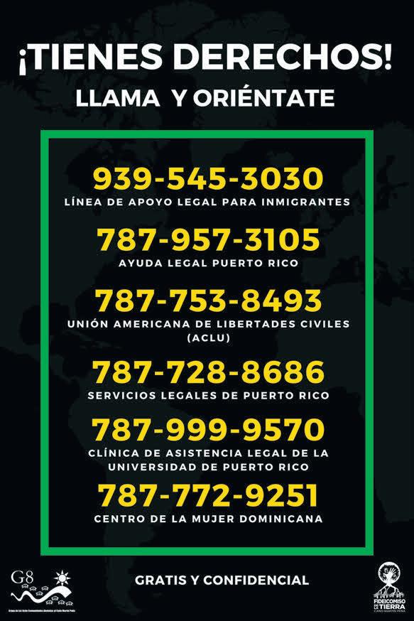 Durante los pasados meses, desde el G-8 y el Fideicomiso de la Tierra se completó una campaña de orientación y rotulación en nuestras comunidades para apoyar a nuestras vecinas y vecinos migrantes. Esta campaña surgió como respuesta a situaciones de discrimen ocurridas recientemente y tuvo como objetivo recordar algo muy importante: ¡TODAS las personas tienen derechos!