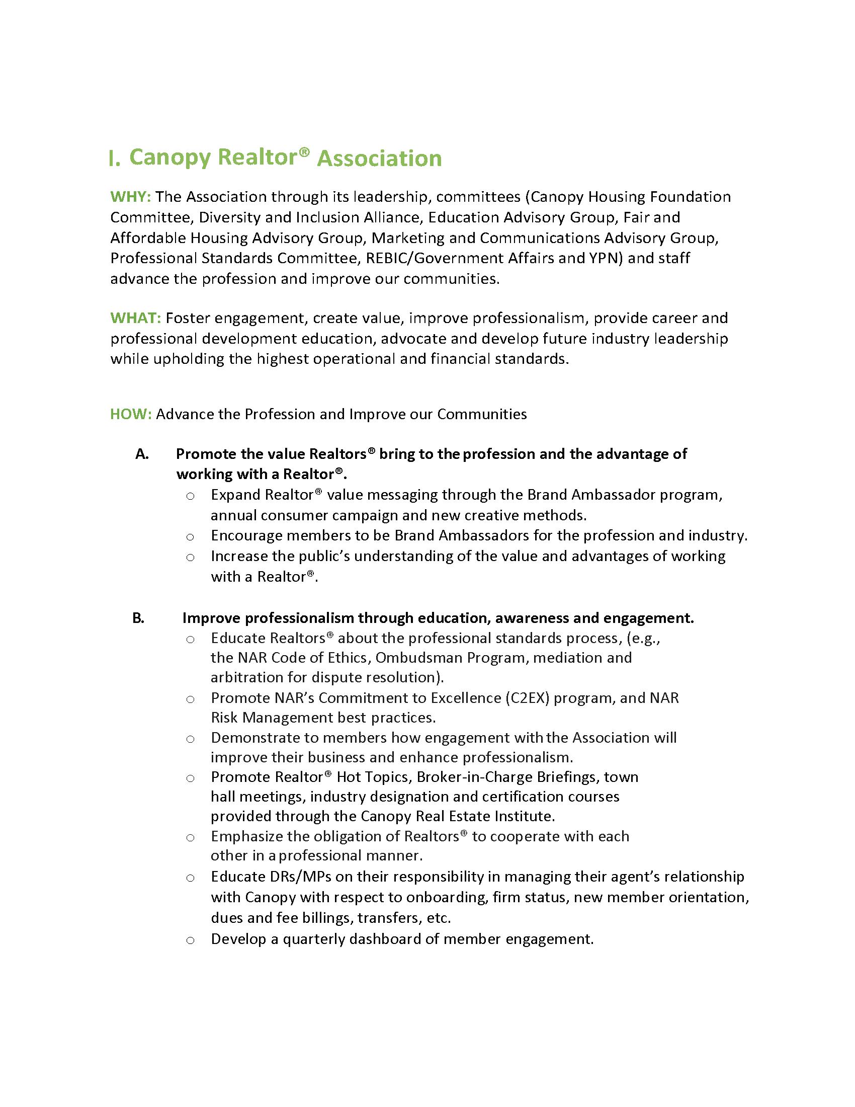 Your Canopy Realtor® Association is here to serve you, and as always, I would like to hear from you. Please share your thoughts and ideas by contacting me at CEO@canopyrealtors.com .
