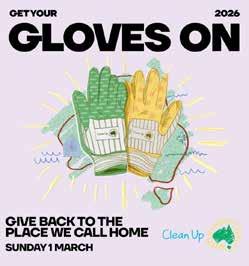 Get Your Gloves On: Clean Up Australia Day returns this Sunday 1 March 2026, with individuals, families, schools, and community groups across the country being called on to join a Clean Up event near them or register their own to be part of Australia’s largest environmental movement. Pip Kiernan, Chair of Clean Up Australia said: “Our nation's litter disposal and recycling challenges are continuously shifting but the one thing we know for certain, is that too much litter is still making its way into our streets, parks, bushlands and waterways.” More information at: www.cleanup.org.au