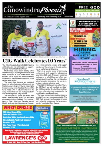 The 2026 C2G Walk will kick off on Thursday 12 March and will conclude on Saturday 14 March at the Grenfell Country Club. For more information and to register for the event head www.c2gwalk.com.