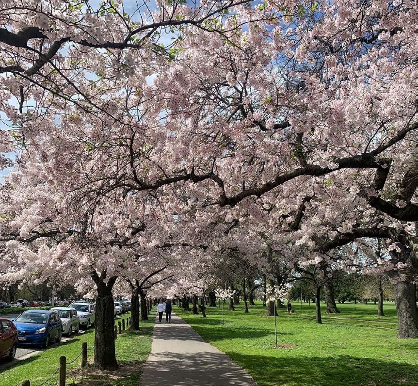 Spring in Christchurch; blossom in Hagley Park along Harper Avenue (photographed in 2022)