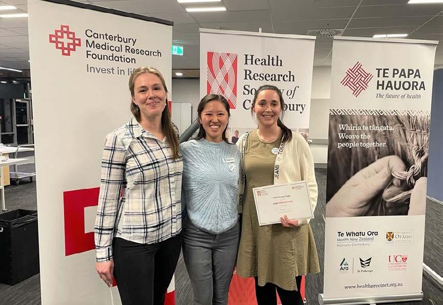 The Health Research Society of Canterbury (HRSC) hosted its annual Poster Expo, welcoming poster submissions across the tertiary institutions as well as Te Whatu Ora researchers. Sponsored by the Canterbury Medical Research Foundation, three cash prizes were awarded to Ashley Deane, Rebecca Lee and Jenny Hamilton (pictured) on the night.