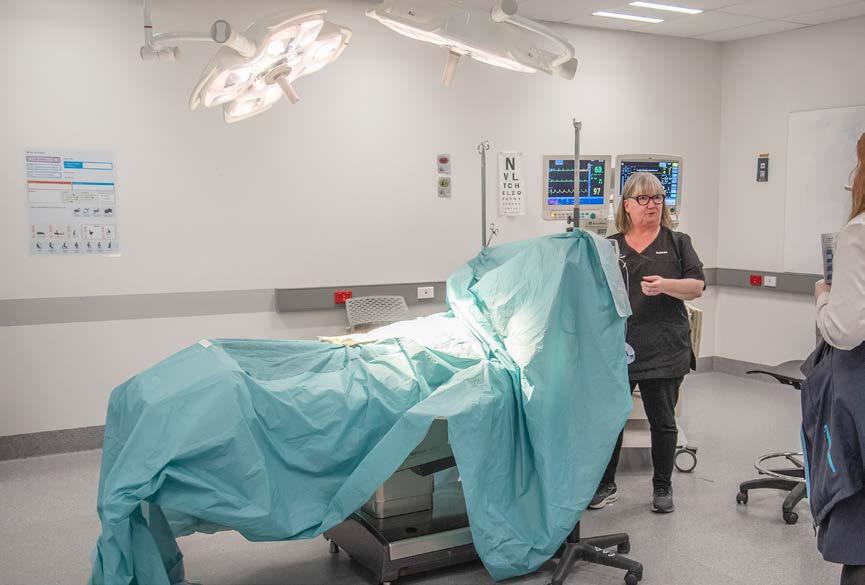 Wellfood and Environmental Services, Allied Health kaiāwhina and Hato Hone St John staff joined nursing and medical colleagues. There was a strong contingent of Allied Health Scientific and Technical professions including psychology, medical imaging, radiation therapy, cardiac physiology/sonography, medical laboratory science, respiratory and sleep, clinical engineering, pharmacy, nutrition/dietetics, physiotherapy, occupational therapy, and social work. The Simulation Centre ran activities that the young people could actively participate in, including listening to heart and lung sounds and maintaining an airway in theatre.