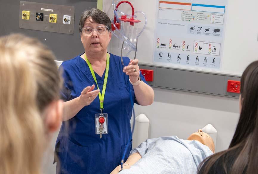 Coordinator of the Manawa Simulation Centre Christine Beasley chats with some students