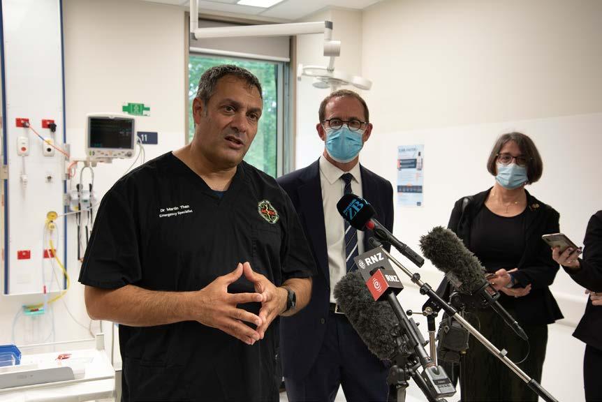 Cover photo: Emergency Medicine Specialist Martin Than demonstrates iCare-Faster on patient Gavin in front of media in Christchurch Hospital's Emergency Department
