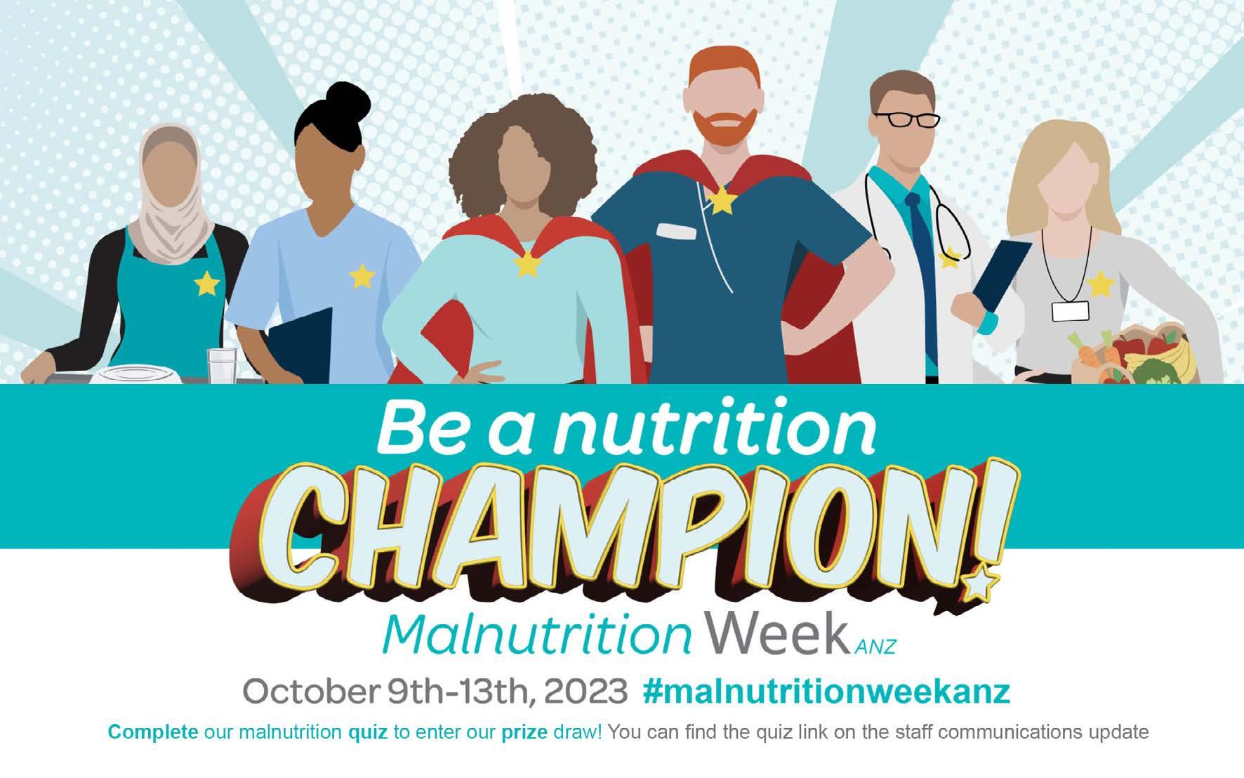 Keep an eye out for our malnutrition booths around Christchurch Hospital this week, and the Malnutrition Week quiz to go in the draw for a hamper of goodies – spot prizes will also be available.