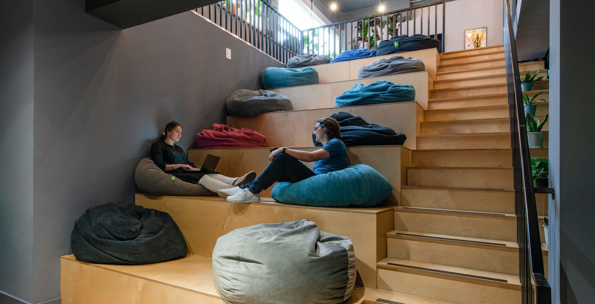 At our Luke Street building, you can privately book and enjoy the Bleachers presentation area for up to 40 people. The space is a great setting for company presentations, events or even team socials.The Bleachers form part of the bigger communal space when not privately booked, so feel free to pull up a bean bag, get your laptop out and work from there.