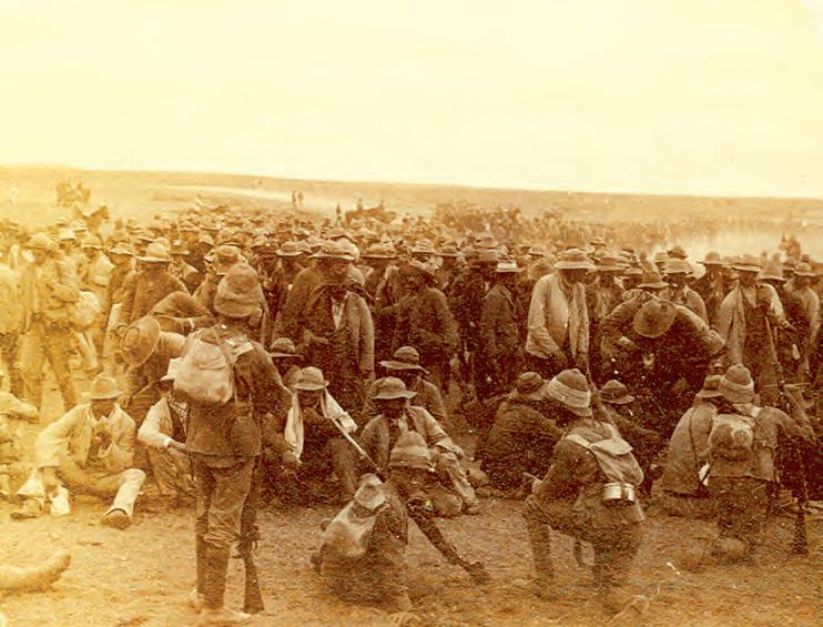 Sergeant Frederick Bettle kept this postcard from the mayor of Cape Town as a memento of his Boer War service. Boer prisoners of war (opposite bottom) after the decisive Imperial victory at the Battle of Paardeberg, in which Canadian troops played a crucial role.