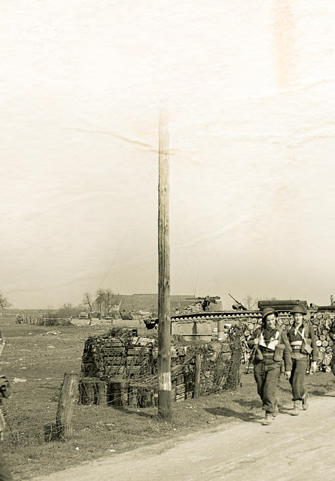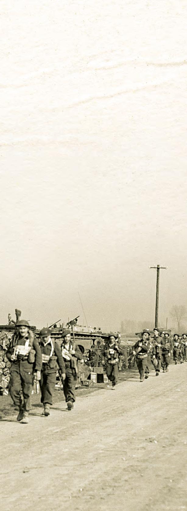 Canadian troops march toward the Rhine in Germany in late March 1945.