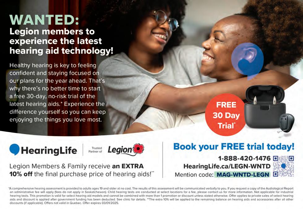On occasion, we make our direct subscriber list available to carefully screened companies whose product or services we feel would be of interest to our subscribers. If you would rather not receive such offers, please state this request, along with your full name and address, and email magazine@legion.ca or write to Legion Magazine, 86 Aird Place, Kanata ON K2L 0A1 or phone 613-591-0116.