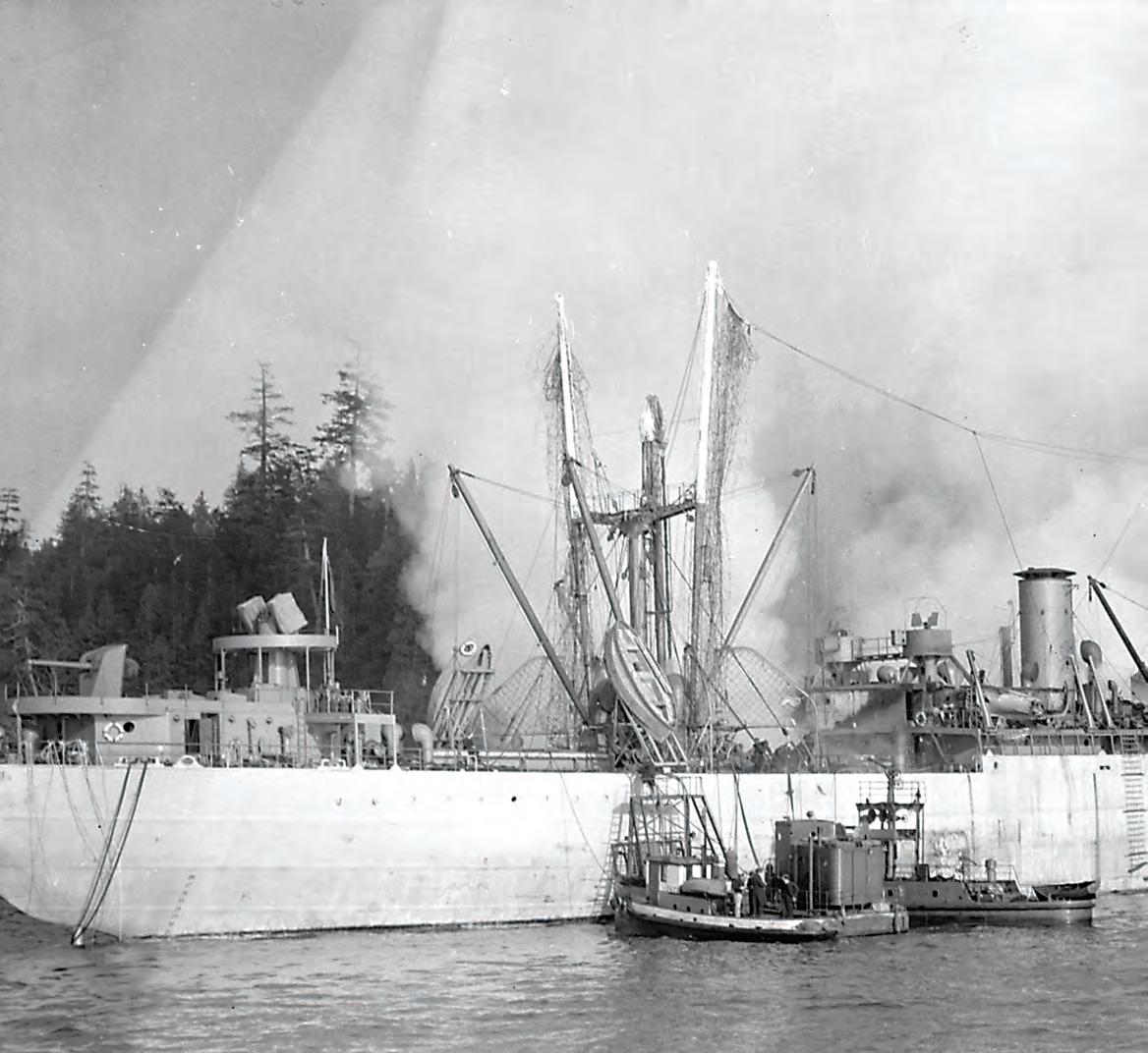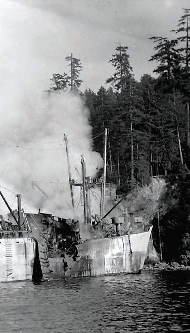 Merchant ship Green Hill Park smolders hours after an explosion rocked its No. 3 hold in Vancouver Harbour.
