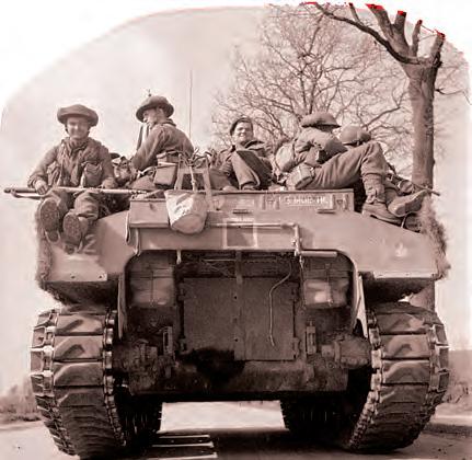 Buffaloes (opposite) full of Canadian soldiers land in the Netherlands. The W design of the track (inset) helped the vehicle navigate mud and sand. The military design was based on the Roebling Alligator, which was used for civilian rescues.