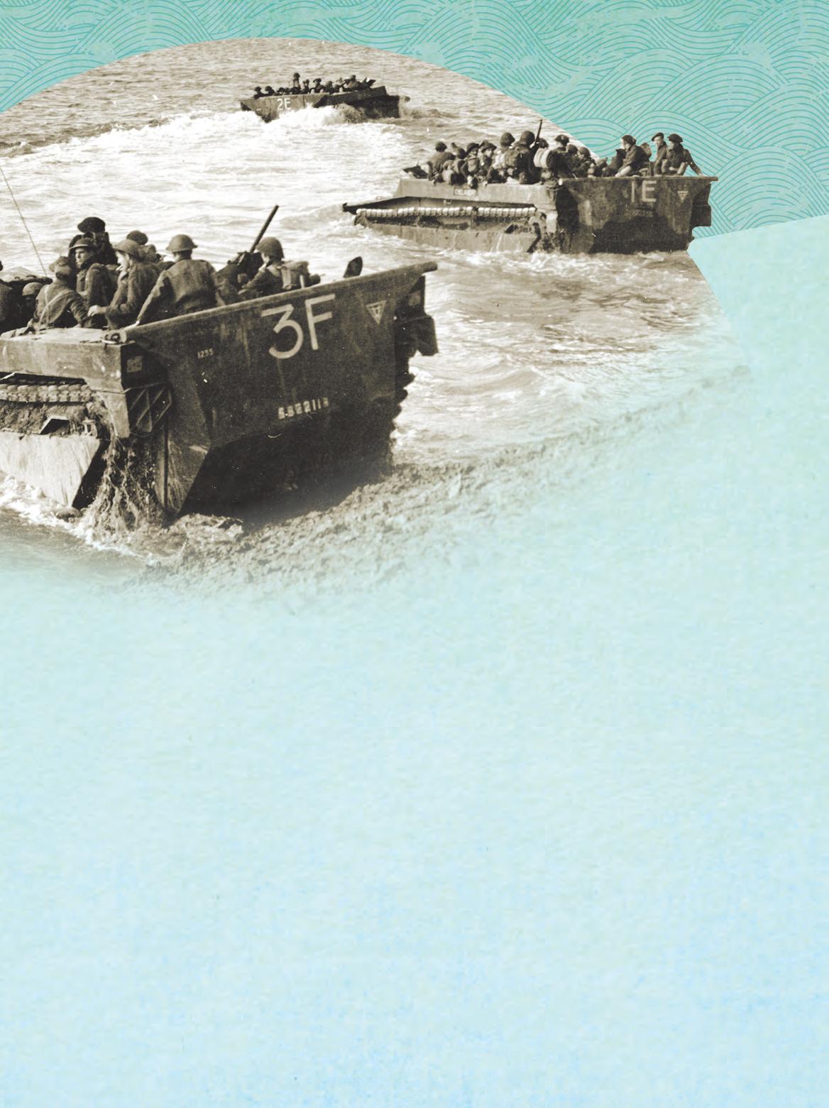 In the dead of night on Oct. 9, the first Buffaloes “waddled down the ramp and splashed into the water,” reported Lieutenant-Commander Robert D. Franks. He expected they would be discovered since the slow-moving vehicles had a shrieking engine that broadcast their movement along the sevenkilometre route down the canal and across an inlet. But noise from shelling covered the sound.