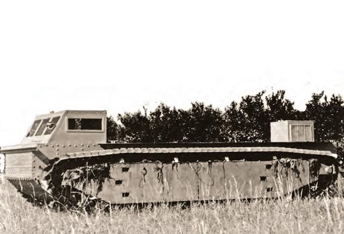 the water at 2.5 kilometres per hour and its cupped metal treads grabbed sandy beaches and crawled over muddy banks. It could easily mount seaside berms, chew through trees and shrubs and claw through loose soil.