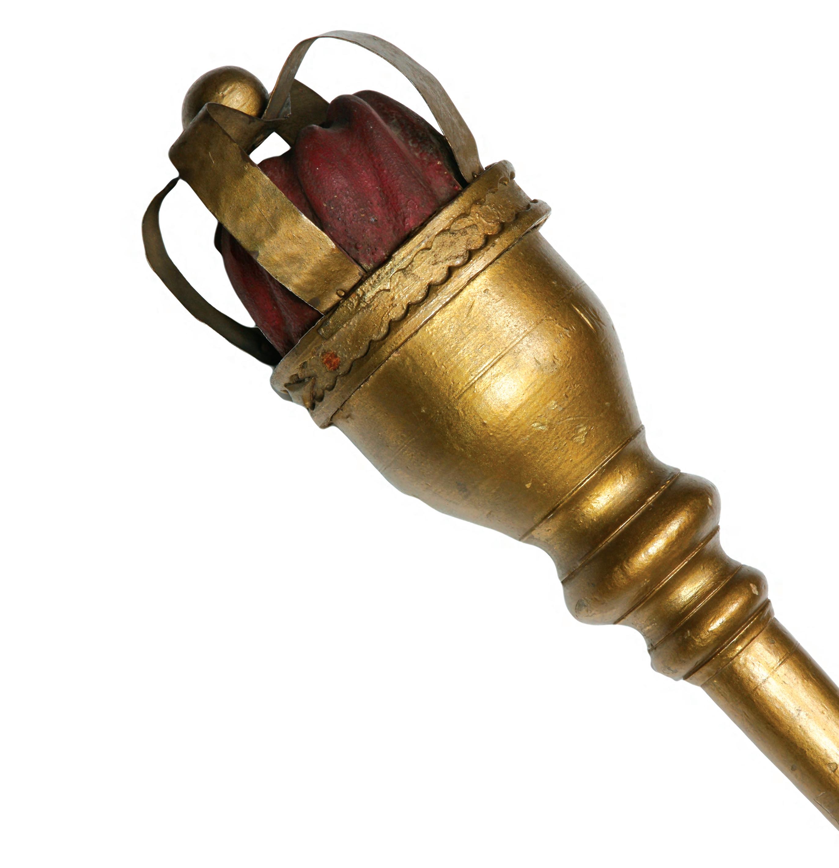 Made from soft wood, perhaps fir or pine, and measuring 142 centimetres long (4′8″), the centuries-old Yankee plunder was, despite its symbolic value to Anglo-Canadian governance, deemed primitive in appearance. Chroniclers often described it as gilded and decorated red in parts; but, it was merely painted gold.
