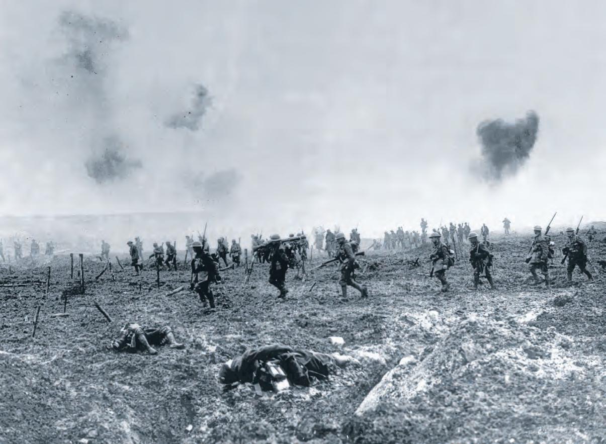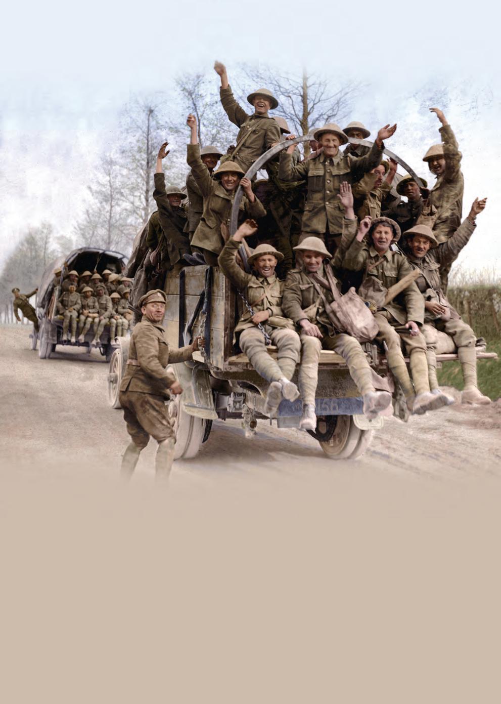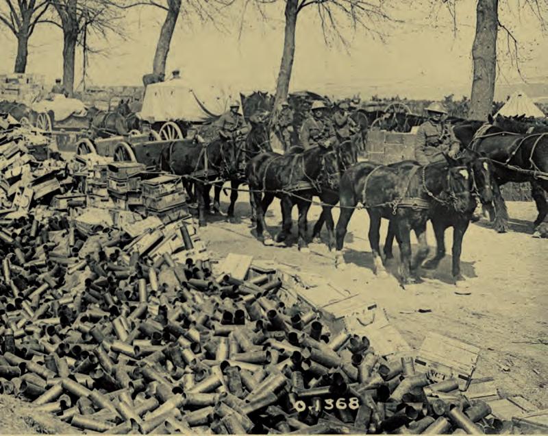 Supply wagons pass mounds of empty crates and spent shells (opposite top) from the Battle of Vimy