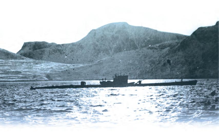 U-537 at anchor in Martin Bay, Nfld., on Oct. 22, 1943. Its crew set up a secret remote weather station there (below), which was discovered by Canadian researchers in 1981 (right).
