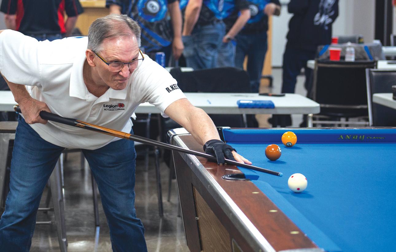 « C’est ce qu’on fait faire à la bille blanche. Il faut savoir la contrôler. Savoir la positionner. Savoir la faire tourner. N’importe qui peut réussir le coup, » a expliqué M. Kelly, en réussissant les siens. En outre, a-t-il ajouté, la camaraderie dans sa filiale locale a joué un grand rôle : « Je suis très, très fier de notre Légion. C’est un bon cercle, avec du bon monde. » Pendant ce temps, M. Uytterhagen et M. Williams se disputaient