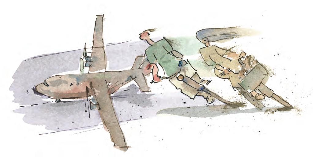 “Shorty afterward,” said Nichols, “the loadmaster, who had been spotting out back with the ramp open, came forward laughing. He said as soon as we cleared the roadway, the cyclists surged back to cross behind us, leaning into the propwash as they pedalled. When I throttled back to low speed, they all fell over in a jumble of bikes and riders.”
