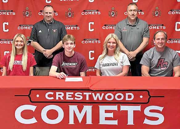 Recent Crestwood High School graduate Frank Usavage signs a letter of intent to continue his academic and lacrosse careers at Rosemont College. Joining in at the signing ceremony are, front row from left: Ava Usavage, sister; Frank Usavage, Holly Usavage, mother; and Frank Usavage, father. Back row: Brian Zabroski, Crestwood head lacrosse coach; and Dean Ambosie, Crestwood athletic director.