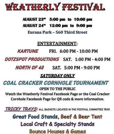 Entertainment will be ongoing. The White Haven Fire Company Social Club will host 20 Pound Head on Friday from See WH PARTY, page 10