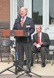 State Sen. Dave Argall (R-29) and state Rep. Doyle Heffley (R-122) joined Weatherly mayor P. J. Hadzick, borough manager Harold Pudliner and Melissa Keiser of Alliance for Building Communities (ABC) at a press conference on Tuesday to announce that work to transform the blighted Schwab School into 30 affordable apartments will soon begin.