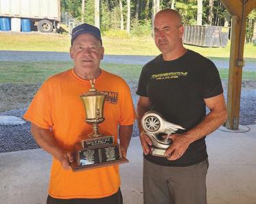 Mark Aubele, right, won the Fall Event of the Weatherly Hillclimb this weekend. At left is Weatherly Hillclimb Association president Joe Cyburt, who made the presentation.