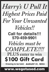 THE JOURNAL OF PENN-KIDDER, JULY-AUGUST, 2023 — PAGE 3 Your personal injury law firm! HAZLETON • PHILADELPHIA www.slusserlawfirm.com 570-453-0463 Injured? Speak to a lawyer in one hour or less day or night! TAXES Now Open in Ahart’s Plaza in Blakeslee Open Monday to Saturday 570 643-2283