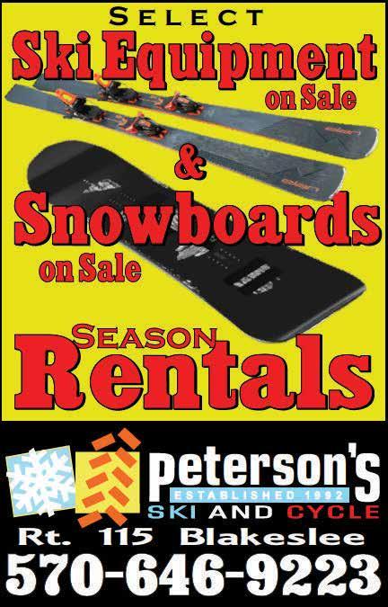The skiing community in our area is like a family and has a long history. Peterson’s Ski and Cycle is proud to be a part of that family for over 30 years at our location in Blakeslee. We are a one-stopshop for all your skiing and snowboarding needs, from clothing, to equipment, to tuning and repair. We also have an amazing selection of Pocono Mountains souvenirs. Stop by and say hello or visit us online at petersonsskiandcycle.com. We hope to “ski” you soon!