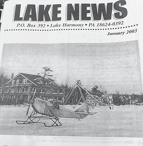 The front page of this issue, shown at right, featured a picture from 1932 of a wingless small plane on skis, parked in front of the Smith cabin on frozen Lake Harmony. The picture is from a postcard provided by Bob and Jean Smith.