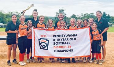 The Weatherly U10 Lady Wreckers All-Stars captured the District 18 8-10 Softball Tournament championship with a 4-3 walkoff victory over U10 Carbon Softball in the title game, played in Lansford. The U10 Lady Wreckers have reached the championship round of the Section 6 Tournament, and can advance to states with a win either Tuesday or Thursday this week against Northwest. Team members celebrating the program’s first-ever district championship are, from left: Assistant coach Kayla Durham, Mackenzie Clabia, Aubrey Clabia, manager Rachel Witner, Briella Vanblargan, Cassidy Witner, Audrey Wagner, Korah Gilbert, Myah Makowiec, Reya Gregory, Isabella Durham, Jenna Jones, Mia Durham and assistant coach Autumn Gilbert. One player missing from the photo is Auriella Rambaran. Submitted Photo