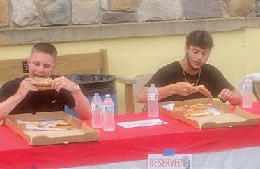 EATING CONTESTS were held in memory of Stephen Curry in front of the White Haven Diner. Above, the Hot Dog contest sponsored by Renées Cold Cut Hut. Below, the Pizza contest sponsored by Antonio’s Pizza.