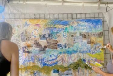 ART: Michelle Lee worked with Jam visitors both days on a collage/painting representing the community and its relationship to the Lehigh River. The final work will be revealed at a future event.