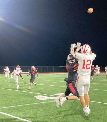Crestwood receiver Jack Rodgers (12) and North Pocono defender Tate Bowen (2) go after a Jaden Shedlock pass during Friday night’s District 2 Class 4A semifinal playoff game in Moscow. The pass fell incomplete.