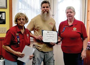 At their September meeting American Legion Auxiliary Unit 360 presented a Good Deed Award to Ethan Darrough, for his Eagle Scout Project. Ethan repaired and repainted 13 benches at Tweedle Park in Weatherly. His father, John, accepted the award as Ethan is now at college. Shown from left are Theresa D’Andrea, Children & Youth Co-Chairman, John Darrough, Georgeann Herling, Unit 360 President and Children & Youth Chairman.
