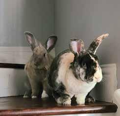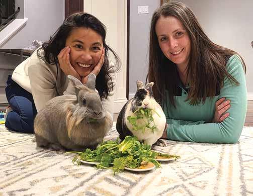 Two years ago, Miso was born on a farm in Burleson and rode on a 4-wheeler to meet us. (Could you imagine our shock seeing a baby bunny on the steering wheel of an ATV?) We learned that rabbits are social animals and Miso would benefit from having a sibling. We volunteer at Bunny Burrow Rabbit Rescue in Haltom City, which is where we met Lumpia a year later. Miso and Lumpia had a friendly meet-andgreet session, so we adopted her and they've been attached at the hip ever since.