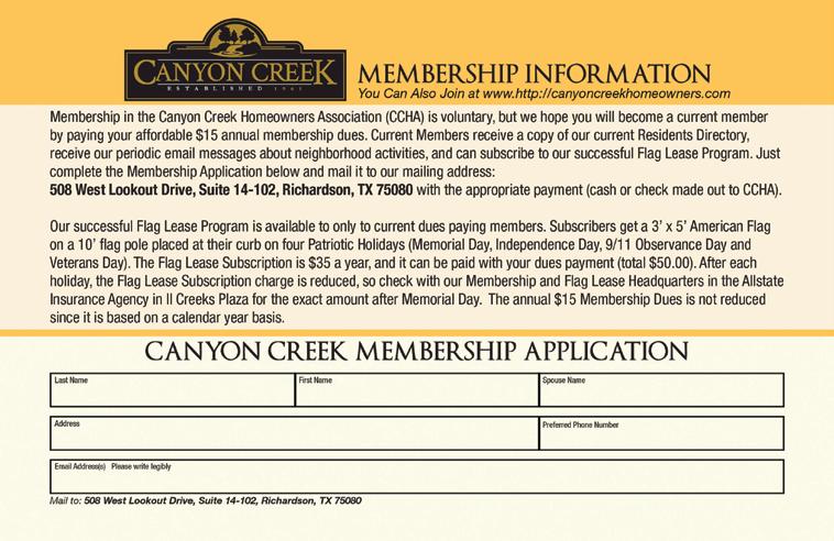 Finally, if you’ve never stopped to read our CCHOA president Warren Caldwell’s “Echoes from the Canyon,” I hope you will. He has a flair for writing and puts time and effort into both his job as HOA president and writing for the magazine each issue. And the Board shares neighborhood news with you as well.