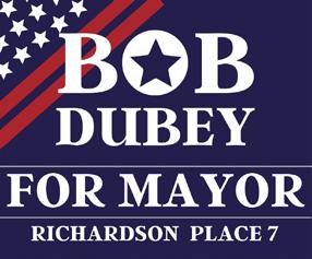 “There is no one more qualified to lead our great city than Bob Dubey. As an RISD Coach and Athletic Director, Bob rose to leadership positions at the regional and state level, earning a state Hall of Honor award. He chaired four Richardson City Commissions including the 2014 -15 Charter Review Commission and then served six years as Richardson City Councilman, Place 1.”
