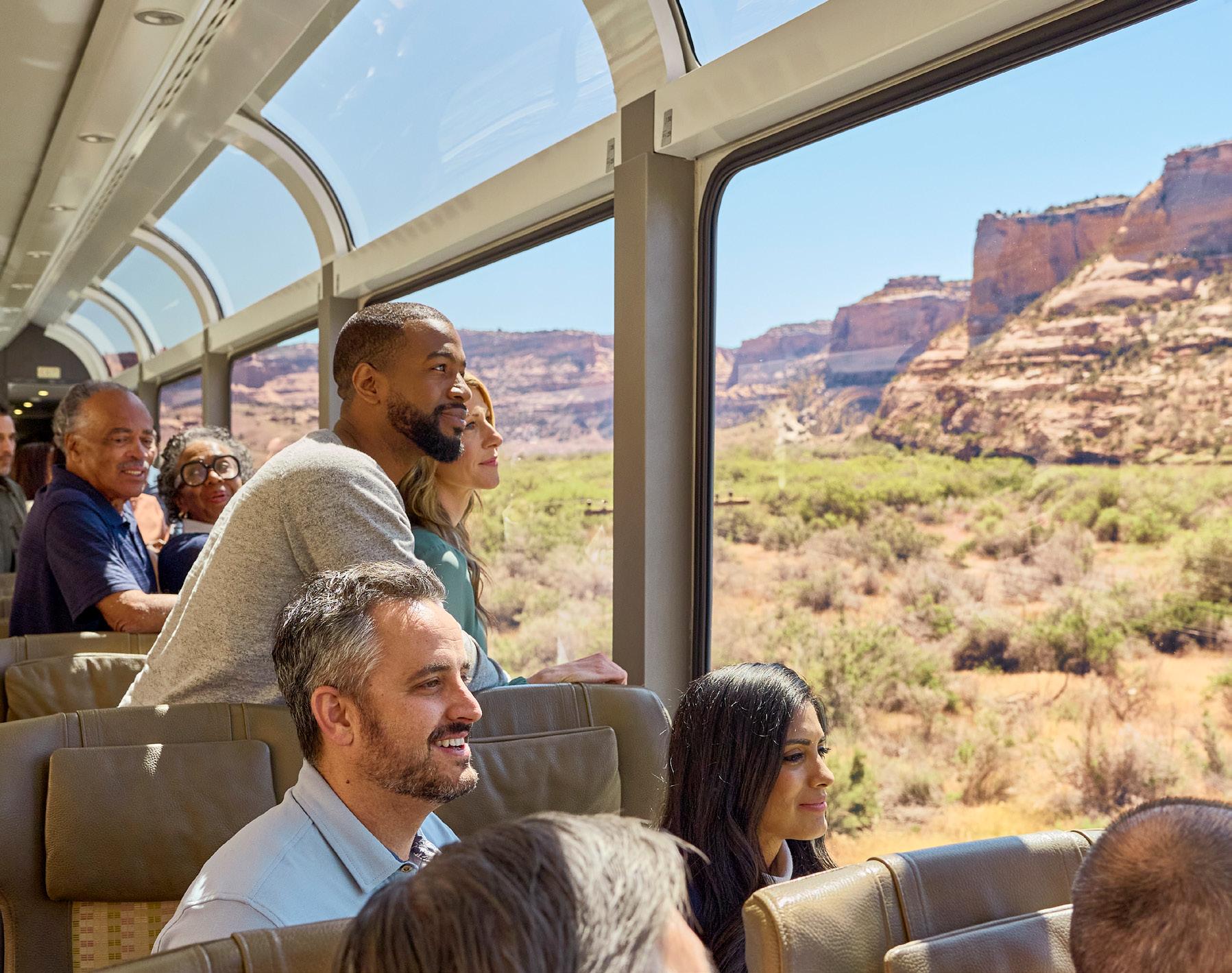 On Canyon Spirit, you’ll embark on an elevated rail journey through the iconic vistas of the Southwest. We only travel during the day, so you won’t miss a moment of the views. With our panoramic glassdome coaches, you’ll have a frontrow seat to the unfolding wonders of the region, many of which are accessible only by rail.