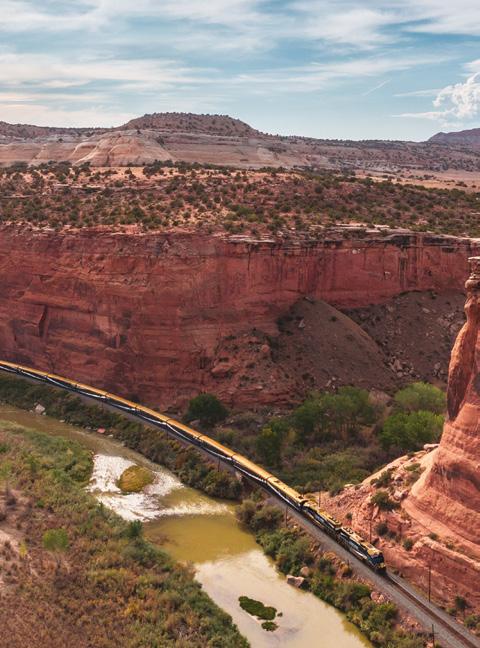Onboard Canyon Spirit, you’ll discover the aweinspiring sights between Denver and Moab, with a mid-rail journey overnight stop in delightful Glenwood Springs. The dramatic scenery en route ranges from the vigor of gushing rivers to the stillness of breathtaking canyons, awakening your sense of wonder and amazement.