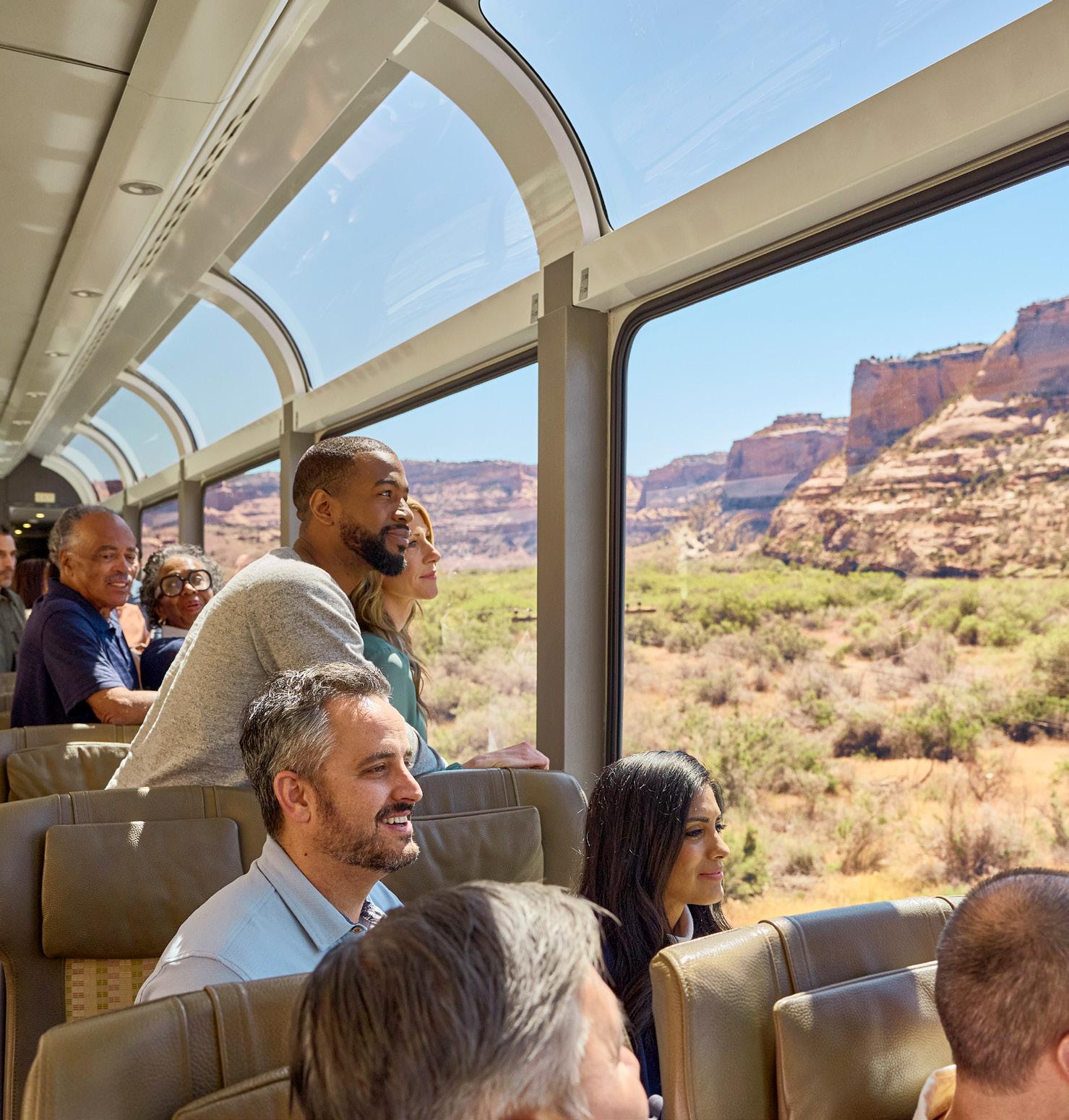 Witness the aweinspiring beauty of Utah’s Mighty 5 National Parks, seamlessly paired with two days of extraordinary landscapes onboard the train.