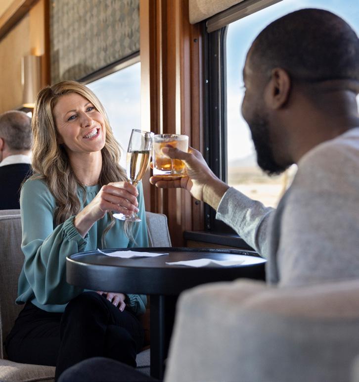 Enhance and elevate your Southwest expedition with our Premier upgrade. With exclusive access to the lounge car, you’ll enjoy more space to move around, socialize, and relax, or visit the additional outdoor viewing area for fresh air or to take an action shot of the epic scenery. Choose from an array of handcrafted signature cocktails served at the bar in the lounge car, receive expert wine pairings with meals, and enjoy additional gourmet snacks.