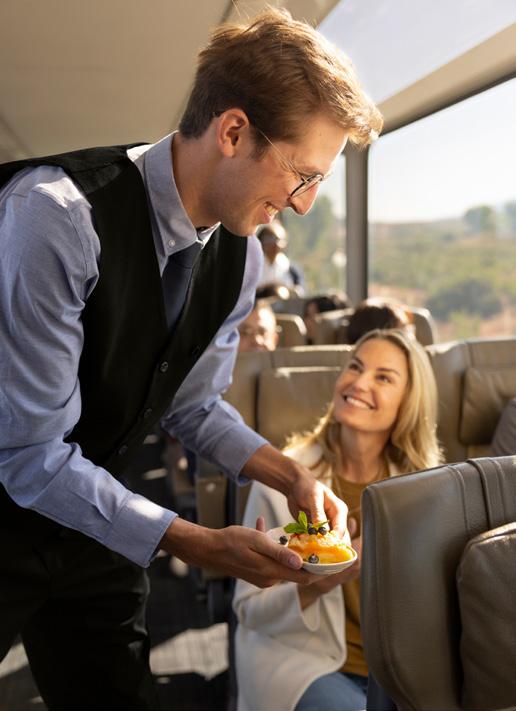 With every Canyon Spirit rail journey, you’ll receive our Signature experience, which is designed to delight and immerse you in the magic of the moment. You’ll enjoy regionally inspired meals, thoughtfully served right at your seat, hear captivating stories from our onboard Hosts, and receive world-class service that anticipates your every need.