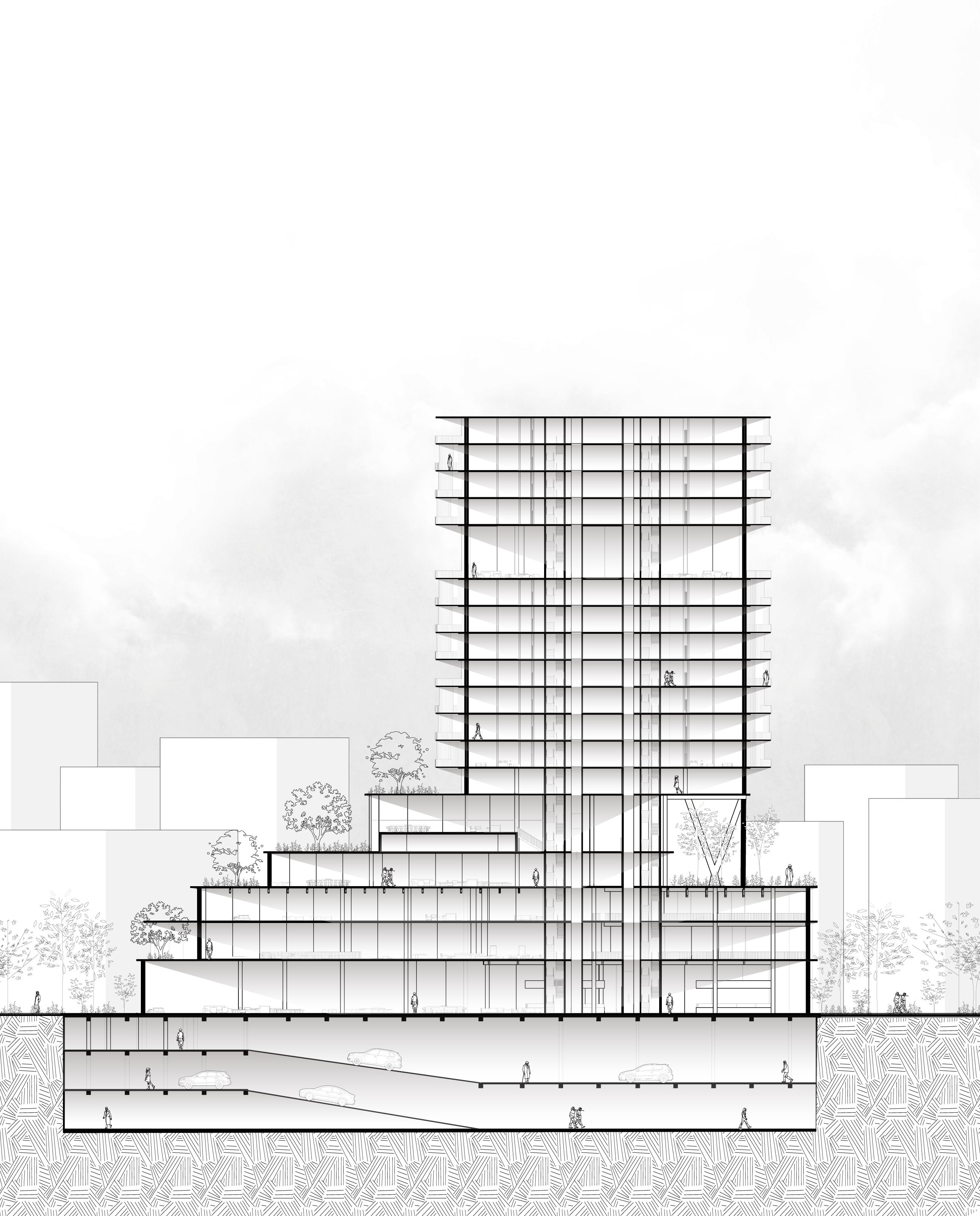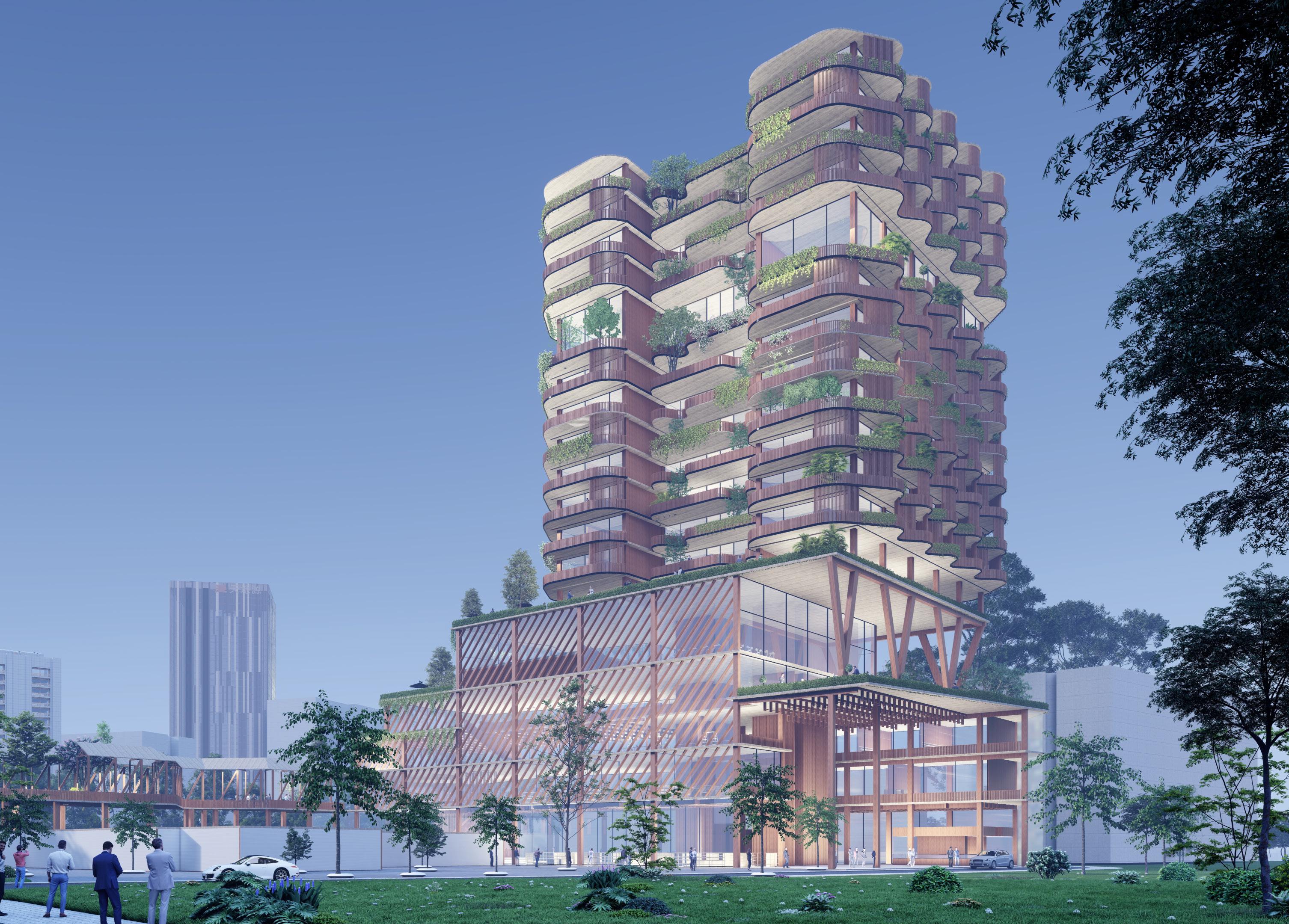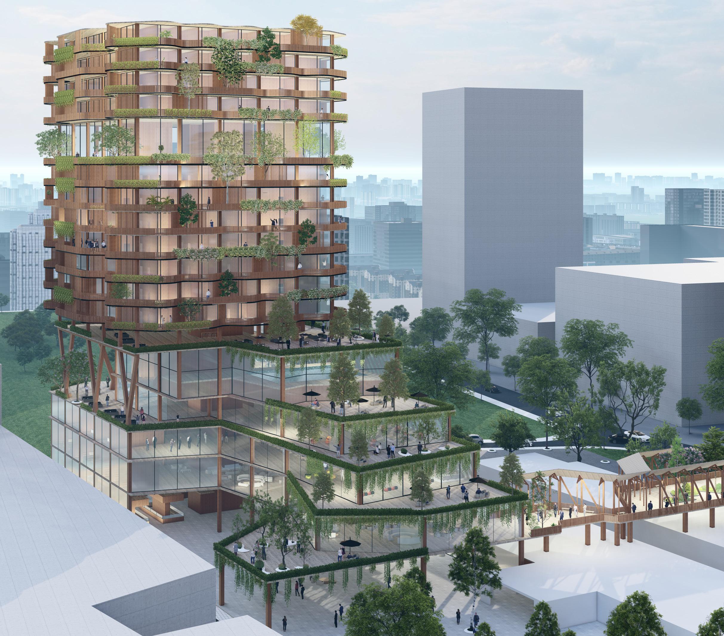 “Building a house is a cultural phenomenon; its form and organization are significantly influenced by the cultural context to which it belongs,” says Amos. At present, timber has emerged as a potential alternative to traditional building materials such as steel and concrete, primarily due to its environmental benefits. With increasing urbanization and population density, there’s a need to continue constructing more houses. Architects face the significant challenge in the future of addressing global housing needs while mitigating climate change conflicts. Timber offers hope in this regard. In the United States, 48% of greenhouse gases are related to the construction industry. One cubic meter of timber can absorb one ton of carbon dioxide, timber is the only natural resource that can be used for construction, offering a medium for carbon storage and emission reduction. This project focuses on promoting community engagement, aiming to create a landmark of eco-friendly urban living. By leveraging the site’s location, a multifunctional activity space is designed to actively attract visitors and local community participation. The extensive use of timber is a distinctive feature of the design, injecting warmth and joy into the community atmosphere. By fostering a sustainable, people-centered environment, the project is dedicated to redefining urban living and inspiring deeper human connections.
