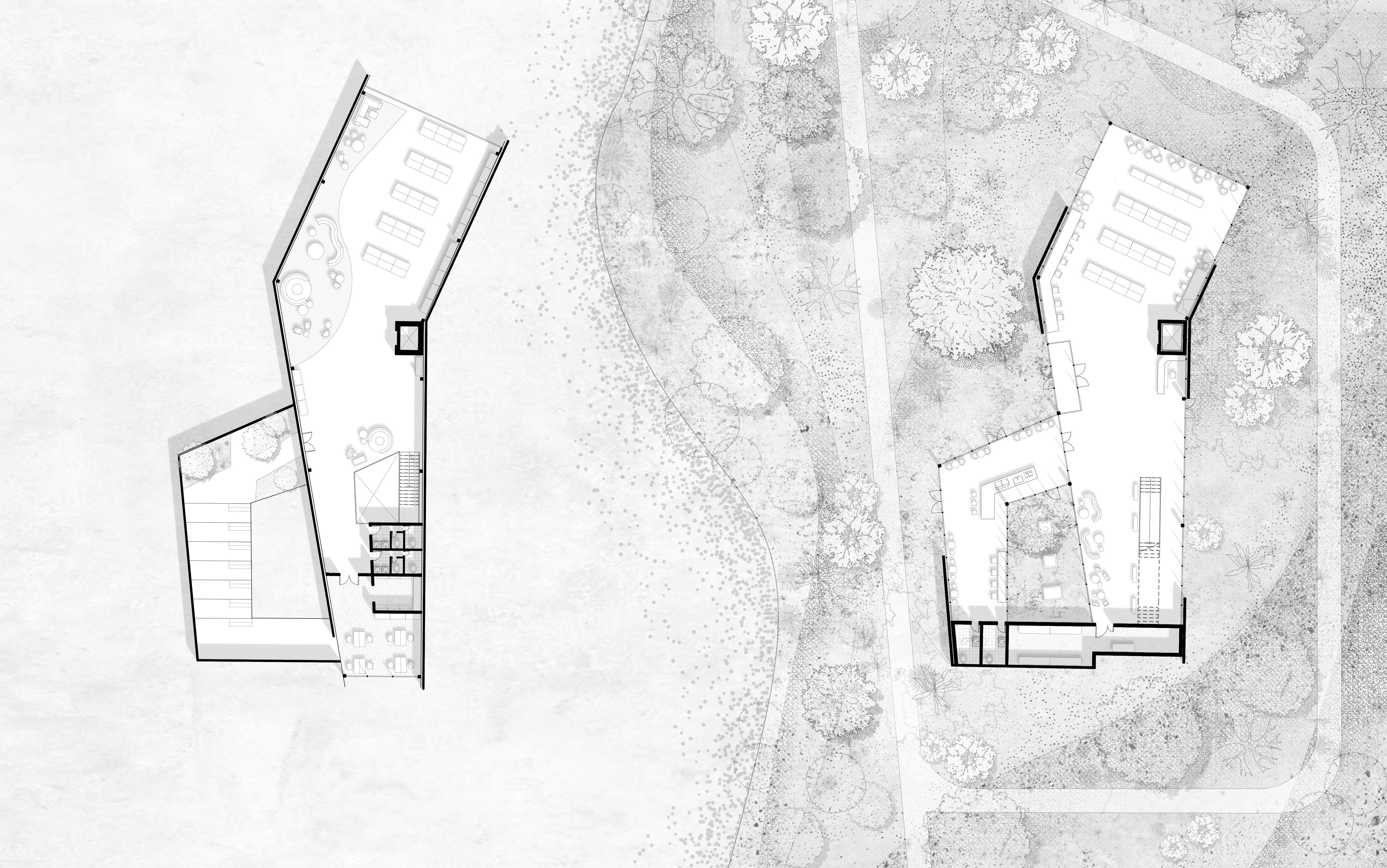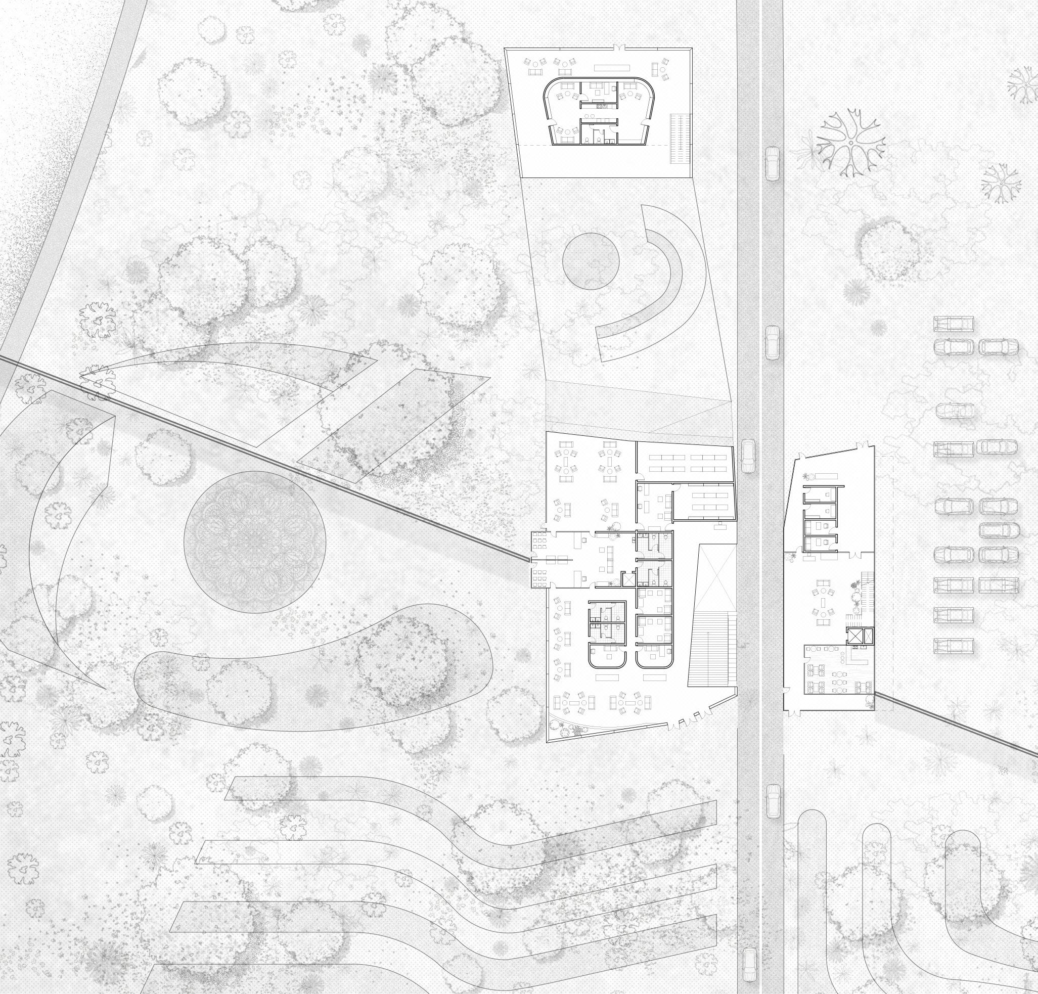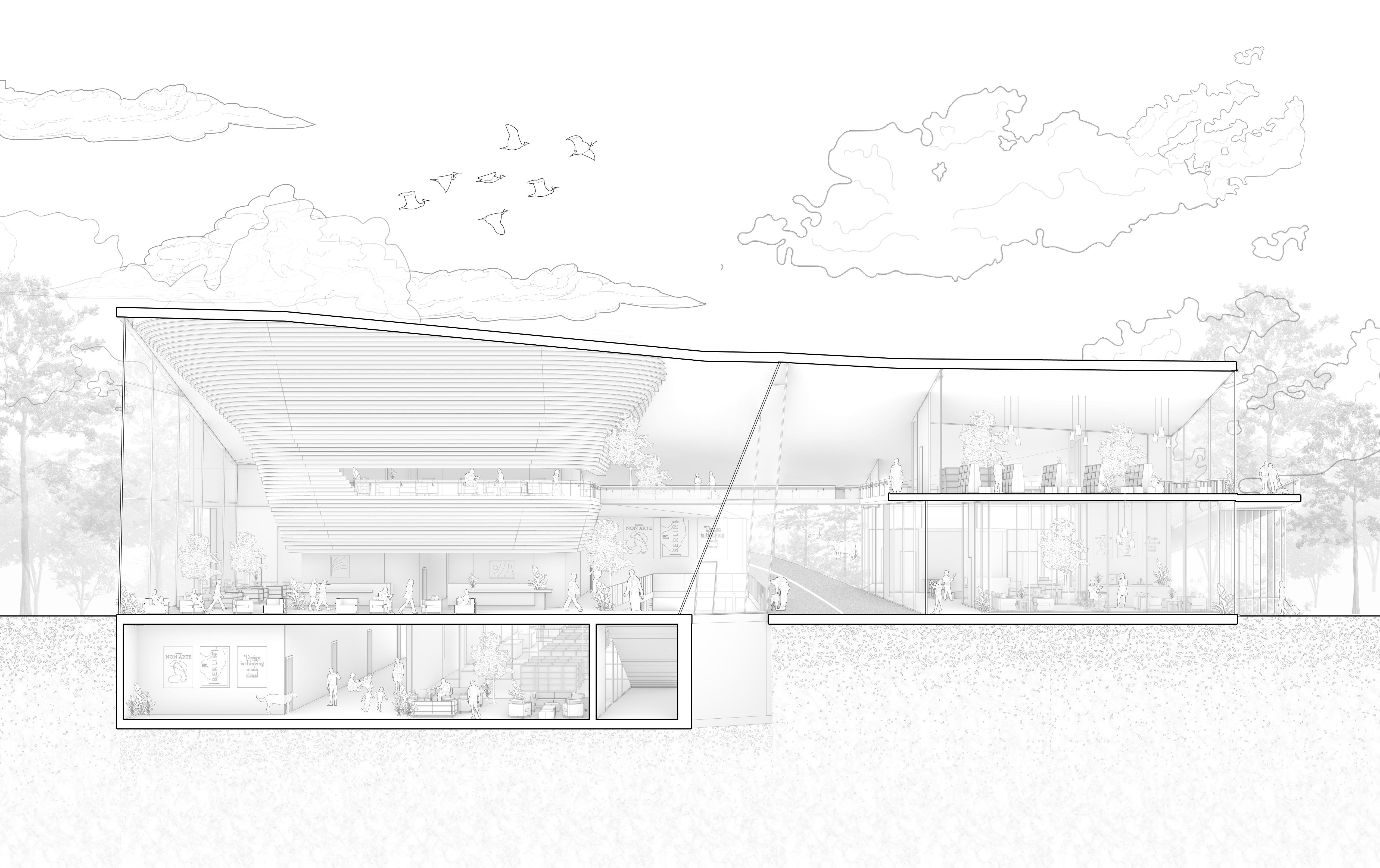 In the fast-paced world of today, there’s a need for a building that can slow down the rhythm of life. The building is located by a lake, allowing everyone to slow down their usual rhythm, showing the quietness of a different life from the city. The architectural form is inspired by the sculptures of Henry Moore, adopting organic forms that symbolize fluidity and interconnectivity. The outdoor spaces directly face the lake and natural landscape, changing from dawn to dusk with the seasons. Unique relationships between each space and the natural landscape are established, determining how wind and light pass through and enter the building. From the outside, it appears as a piece of marble, pure and solid; but inside, it offers a wealth of sensations and experiences. Upon entering the space, one begins to feel the light, breeze, and sounds. After these sensations, a unique spiritual connection between each person and nature is formed.