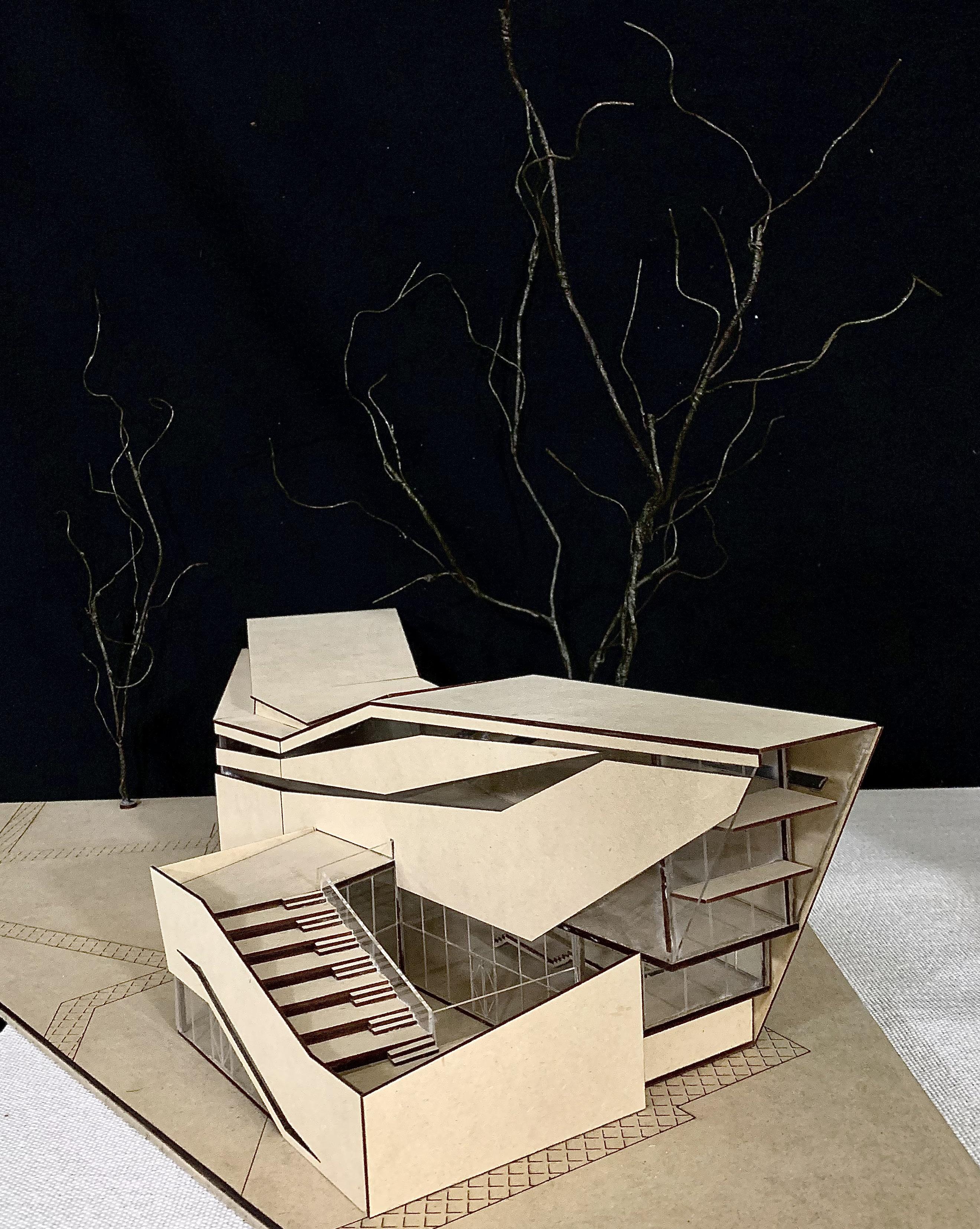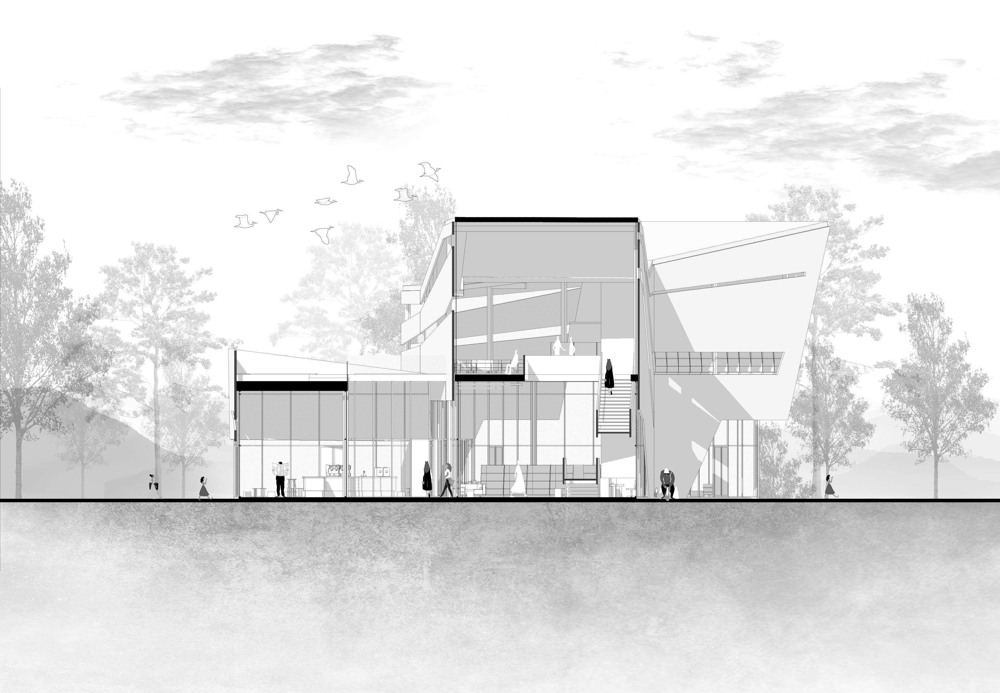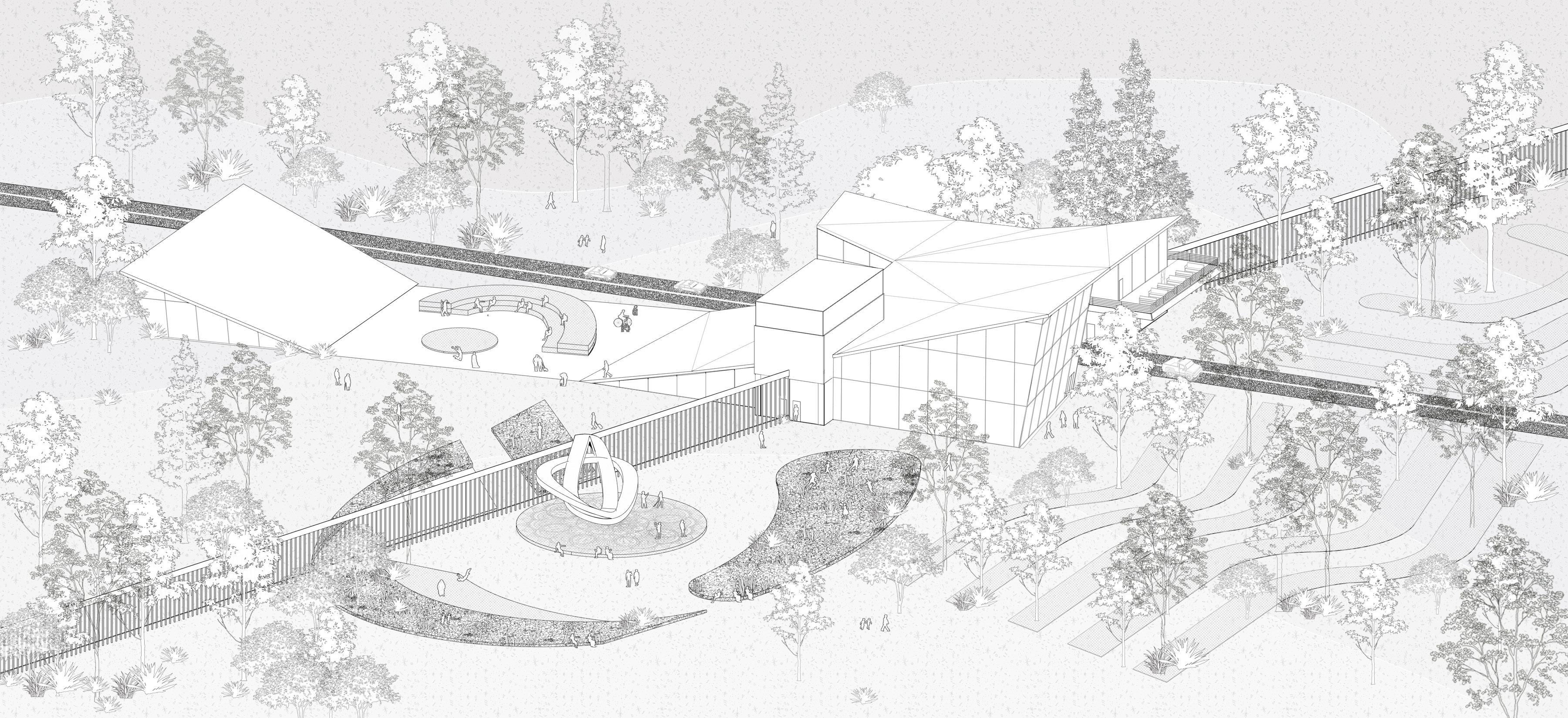 The Miami University Art Museum, built in 1978 by Walter Netsch of SOM, building structure evolved from the filed theory. The primary task of this project is renovation and expansion, taking into account various aspects such as the existing building’s structure, geometric form, and function. Field surveys of the surrounding environment and terrain are conducted, and potential designs are planned based on personnel needs and budget analysis. The design goal is to better celebrate the diversity of art, engaging in dialogue with visitors through visual culture. It aims to strengthen the connection between the Miami University museum and the campus.