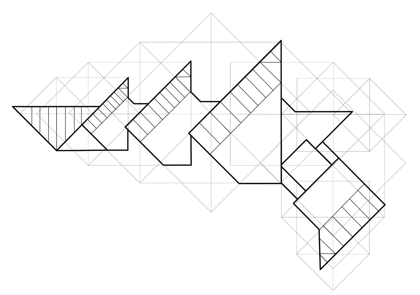 “Large Interior Form” Curve Analysis Rotate 180° Plan Envelope Elevation Envelope Copy and Move Original Cube Apply Lines to Mass Create Outdoor Space Apply Plan Layout Apply Roof Layout Delete and Drag Rotate 90° Define Plan Layout 0 150’ 300’ N
