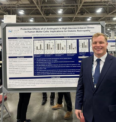 Luciano Magurno en la Reunión Anual de la Asociación para la Investigación en Visión y Oftalmología (ARVO 2025) celebrada del 4 al 8 de mayo de 2025 en Salt Lake City, Utah, EE. UU., junto a su trabajo: Protective Effects of α1-Antitrypsin in High Glucose-Induced Stress in Human Müller Cells: Implications for Diabetic Retinopathy