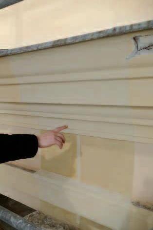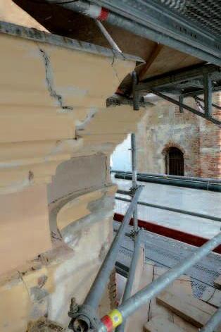 le e chiuse con malta speciale. Dove invece abbiamo dovuto intervenire togliendo l’intonaco è su un tratto di tre metri sulla parete sud perché, anziché essere fatto con malta di calce, era prevalentemente cementizio e non lasciava traspirare il muro. Lì bisognerà intervenire per ricucire ed eliminare le fessurazioni, operando in maniera molto decisa intorno ai serramenti, che risultano l’elemento più esposto a infiltrazioni.